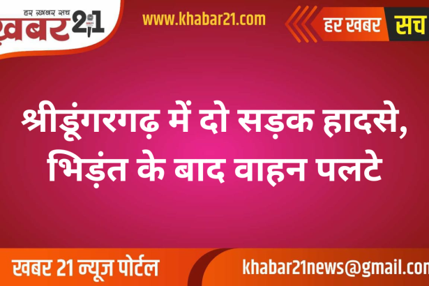 बीकानेर। जिले के श्रीडूंगरगढ़ क्षेत्र में एक के बाद एक दो सड़क हादसे होने से हड़कंप मच गया। गनीमत रही कि दोनों घटनाओं में कोई जनहानि नहीं हुई। जानकारी के अनुसार देर रात बिग्गा गांव के पास एक ट्रैक्टर और पिकअप की आमने-सामने टक्कर हो गई। टक्कर इतनी जोरदार थी कि दोनों वाहन अनियंत्रित होकर पलट गए। हादसे के बाद…