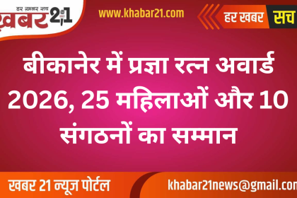 बीकानेर में अंतरराष्ट्रीय महिला दिवस के अवसर पर नन्दलाल जोशी चैरिटेबल फाउंडेशन द्वारा “प्रज्ञा रत्न अवार्ड 2026” कार्यक्रम का आयोजन 7 मार्च 2026 को रिद्धि सिद्धि पैलेस, रानी बाजार औद्योगिक क्षेत्र में किया जाएगा। इस समारोह में 25 उत्कृष्ट महिलाओं और लगभग 10 महिला संगठनों को उनके उल्लेखनीय कार्यों और महिला सशक्तिकरण में योगदान के लिए सम्मानित किया जाएगा। फाउंडेशन…