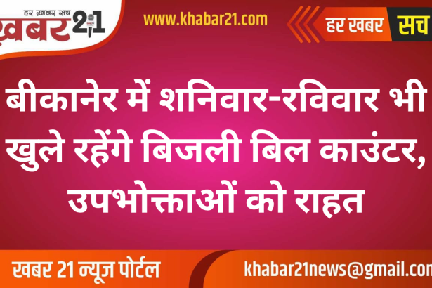 बीकानेर में बिजली उपभोक्ताओं की सुविधा को ध्यान में रखते हुए बीकेईएसएल ने महत्वपूर्ण फैसला लिया है। कंपनी के अनुसार, 28 मार्च (शनिवार) और 29 मार्च (रविवार) को शहर के सभी बिल संग्रहण केंद्र (कैश काउंटर) खुले रहेंगे। इन काउंटरों का समय सुबह 9:30 बजे से शाम 6:00 बजे तक निर्धारित किया गया है। इस दौरान उपभोक्ता शहर के किसी…