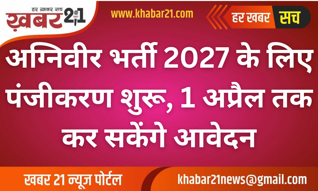 जयपुर। भारतीय सेना में अग्निवीर और रेगुलर कैडर सैनिक के रूप में शामिल होने के इच्छुक युवाओं के लिए पंजीकरण प्रक्रिया शुरू हो गई है। राजस्थान के युवा उम्मीदवारों को सेना में भर्ती के लिए 1 अप्रैल 2026 तक आवेदन करने का अवसर दिया गया है। इच्छुक अभ्यर्थी निर्धारित समय सीमा से पहले अपना पंजीकरण कर देश सेवा की दिशा…