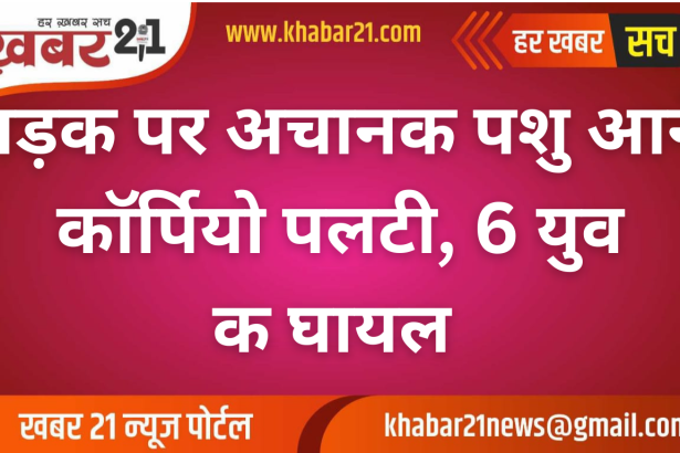 बीकानेर जिले के नापासर थाना क्षेत्र में एक सड़क हादसे में 5 से 6 युवक घायल हो गए। बताया जा रहा है कि अचानक सड़क पर पशु आ जाने से एक क्लासिक स्कॉर्पियो अनियंत्रित होकर पलट गई। हादसे के बाद घायलों को इलाज के लिए अस्पताल भेजा गया। जानकारी के अनुसार यह दुर्घटना देशनोक रोड पर कल्याणसर के पास हुई।…