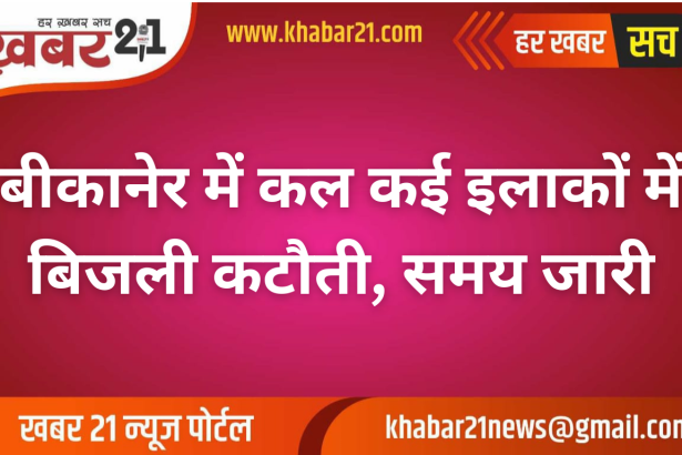 बीकानेर शहर में विद्युत तंत्र के रखरखाव को लेकर शुक्रवार को कई क्षेत्रों में निर्धारित समय के लिए बिजली आपूर्ति बंद रहेगी। बिजली कंपनी द्वारा जारी सूचना के अनुसार यह कटौती मरम्मत और मेंटेनेंस कार्यों के चलते की जा रही है। जानकारी के मुताबिक, सुबह 7:30 बजे से 11:30 बजे तक डी-3 फीडर से जुड़े धोबी तलाई और नाथों का…