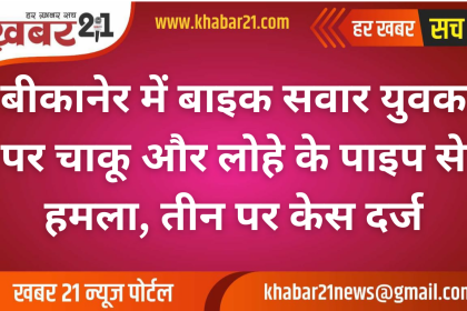 बीकानेर। बीकानेर के गंगाशहर थाना क्षेत्र में देर रात एक युवक पर जानलेवा हमले का सनसनीखेज मामला सामने आया है। बाइक पर सवार होकर जा रहे युवक को आरोपियों ने रास्ते में रोककर लोहे के पाइप और चाकू से लहूलुहान कर दिया। वारदात के बाद पीड़ित ने तीन नामजद आरोपियों के खिलाफ पुलिस में शिकायत दर्ज कराई है। देर रात…