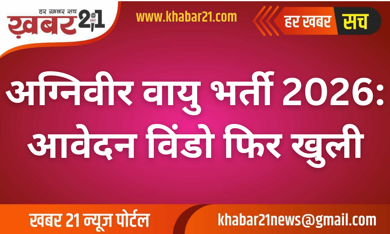 भारतीय वायुसेना में शामिल होकर देश सेवा का सपना देखने वाले युवाओं के लिए राहत भरी खबर है। Indian Air Force ने अग्निवीर वायु इंटेक 01/2027 के लिए ऑनलाइन आवेदन प्रक्रिया दोबारा शुरू कर दी है। जिन अभ्यर्थियों से पिछली बार आवेदन नहीं हो पाया था, उन्हें अब नया मौका दिया गया है। इच्छुक उम्मीदवार आधिकारिक पोर्टल agnipathvayu.cdac.in पर जाकर…