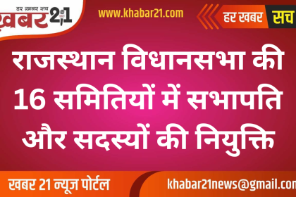 बीकानेर। राजस्थान विधानसभा स्पीकर ने विधानसभा की 16 समितियों में सभापति और सदस्यों की नियुक्ति की है। नियम समिति में पूर्व मुख्यमंत्री वसुंधरा राजे, पूर्व मुख्यमंत्री अशोक गहलोत और पूर्व डिप्टी सीएम सचिन पायलट को सदस्य के रूप में शामिल किया गया है। कुल 16 समितियों में से तीन समितियों के सभापति कांग्रेस के विधायकों को बनाया गया है। प्रश्न…