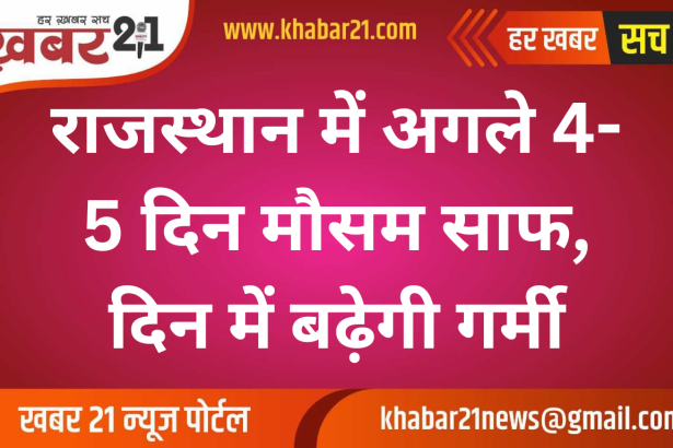 जयपुर। मौसम विज्ञान केंद्र जयपुर के अनुसार, राज्य में अगले 4-5 दिन मौसम साफ रहेगा। दिन के समय तेज धूप के कारण तापमान बढ़ सकता है। राजस्थान में पिछले कुछ समय से चल रहे आंधी-बारिश और ओलावृष्टि का दौर अब धीमा हो गया है। बुधवार को अधिकांश क्षेत्रों में मौसम साफ रहा, केवल कुछ शहरों में हल्के बादल छाए रहे।…