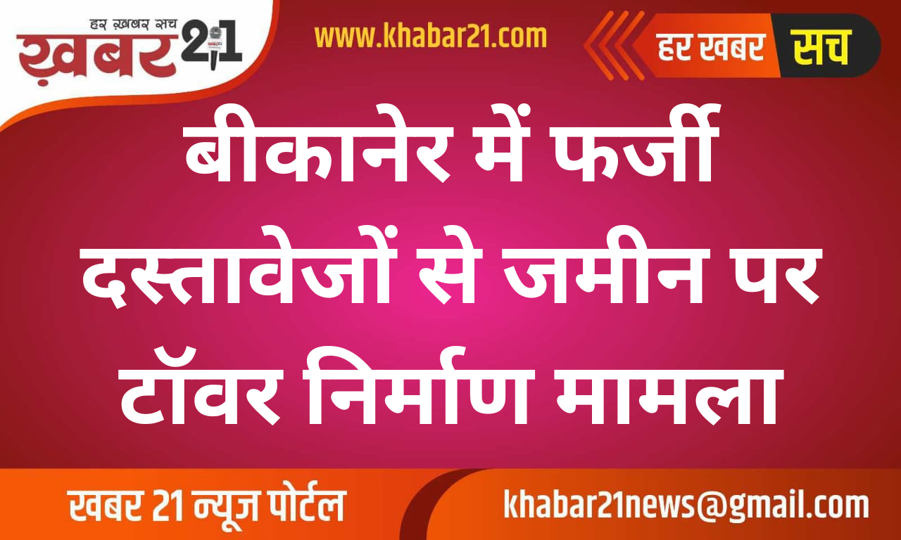 बीकानेर में फर्जी दस्तावेजों के जरिए जमीन पर टॉवर निर्माण का मामला सामने आया है। इस संबंध में पांचू पुलिस थाने में मामला दर्ज किया गया है। नोख हाल शिवबॉडी निवासी कुशाल सिंह ने मोहन सिंह और केएल मीणा के खिलाफ शिकायत दर्ज कराई है। प्रार्थी के अनुसार, आरोपियों ने कूटरचित दस्तावेज तैयार कर उसकी जमीन पर अवैध रूप से…