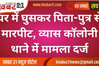 घर में घुसकर पिता-पुत्र से मारपीट, व्यास कॉलोनी थाने में मामला दर्ज