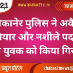 बीकानेर पुलिस ने अवैध हथियार और नशीले पदार्थों सहित युवक को किया गिरफ्तार