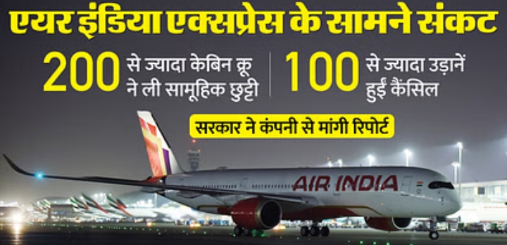 टाटा समूह के स्वामित्व वाली कंपनी एयर इंडिया एक्सप्रेस के केबिन क्रू ने कथित कुप्रबंधन के विरोध में बुधवार को सामूहिक छुट्टी ले ली। 200 से ज्यादा कर्मचारियों के एकसाथ छुट्टी लेने से कंपनी की उड़ानों के परिचालन पर गंभीर असर पड़ा और कंपनी को 100 से ज्यादा फ्लाइट्स रद्द करनी पड़ीं। इसके चलते हवाई यात्रियों को भारी परेशानी का सामना करना पड़ा। मीडिया रिपोर्ट्स के अनुसार, मंगलवार को एयर इंडिया एक्सप्रेस का परिचालन लगभग ठप होने से करीब 15 हजार यात्री प्रभावित हुए। एयर इंडिया एक्सप्रेस खाड़ी के देशों में सबसे ज्यादा उड़ानों का संचालन करती है। ऐसे में केबिन क्रू की कमी के चलते भारत से खाड़ी के देशों को जाने वाली कई उड़ानें रद्द हुईं। एयर इंडिया एक्सप्रेस घरेलू और अंतरराष्ट्रीय स्तर पर रोजाना करीब 360 उड़ानों का संचालन करती है।