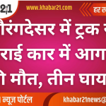 नौरंगदेसर में ट्रक से टकराई कार में आग, दो की मौत, तीन घायल