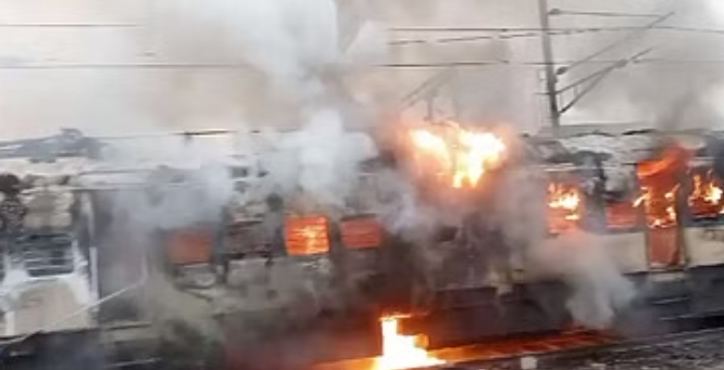 पटना से जसीडीह जा रही पैसेंजर ट्रेन में भीषण आ गई। एक कोच में लगी आग की जद में दूसरी कोच आ गई। देखते ही देखते धूकर-धूकर बॉगी जलने लगी। गनीमत रही की आग फैलने से पहले ही कोच में सवार यात्री कूद गए। कुछ ही मिनट में ट्रेन के दो कोच में आग फैल गई। इससे दो कोच पूरी तरह से जल गए। इधर, घटना की सूचना के तुरंत बाद फायर ब्रिगेड की टीम मौके पर पहुंची और आग पर काबू पाने में जुट गई। रेलवे की टीम की मदद से आग बुझाने की कोशिश की जा रही है। घटना किऊल जंक्शन के प्लेटफॉर्म संख्या चार पर हुई।