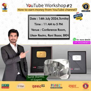 आपको बता दें कि क़रीब महीनेभर पहले रोहित-सुमित ने बीकानेर में यूट्यूब की पहली वर्कशॉप का आयोजन किया था। जिसे काफी अच्छा रेस्पॉन्स मिला था। इसके कुछ ही दिन बाद से दूसरी वर्कशॉप भी जल्द ही करवाने की मांग होने लगी थी। सुमित शर्मा नोएडा में रहते हुए कई सालों से डिजिटल क्षेत्र में काम कर रहे हैं। उन्होंने कई शहरों में अब तक क़रीब 30+ वर्कशॉप्स की हैं। बीकानेर में होने जा रही उनकी दूसरी वर्कशॉप को लेकर भी लोगों में उत्साह देखा जा रहा है।