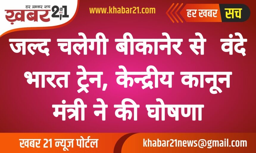 आने वाले दिनों में जल्द ही बीकानेर से भी वंदे भारत ट्रेन दौड़ेगी। बीकानेरवासियों को आरमदायक सफर की सुविधा मिलेगी। इसके संकेत आज केन्द्रीय कानून मंत्री अर्जुनराम मेघवाल ने दिए है। बीकानेर दौरे पर आए केन्द्रीय कानून मंत्री अर्जुनराम मेघवाल ने आज एक बड़ी घोषणा की है।