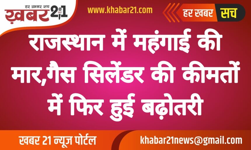 राजस्थान में तेल कंपनियों ने एक अगस्त को 19 किलो कमर्शियल गैस सिलेंडर की कीमतों में 12 रुपए प्रति सिलेंडर की बढ़ोतरी कर दी है। संशोधित दरें आज से प्रभावी हो गई हैं। हालांकि, घरेलू गैस सिलेंडर के दाम यथावत हैं। घरेलू गैस सिलेंडर 806.50 रुपए प्रति सिलेंडर ही मिलेगा। तेल कंपनियों ने आज सुबह 6 बजे एलपीजी सिलेंडर के दाम अपडेट कर दिए है। इससे पहले एक जुलाई को तेल कंपनियों ने 19 किलो कमर्शियल गैस सिलेंडर की कीमतों में 30 रुपए प्रति सिलेंडर तक कटौती की थी। लेकिन, एक महीने बाद ही कमर्शियल गैस सिलेंडर 12 रुपए महंगा हो गया है। कमर्शियल गैस सिलेंडर कीमतों में बढ़ोतरी के बाद राजस्थान में भी संशोधित दरों की सूची जारी हो गई है। राजधानी जयपुर में कमर्शियल गैस सिलेंडर अब 1680 रुपए का आएगा।