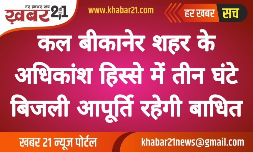 डी.पी.एस., पी.एच.ई.डी. नंबर 15, खतुरिया कॉलोनी, मन मंदिर, सांसद सेवा केंद्र, व्यास कॉलोनी पुलिस स्टेशन के सामने, तिलक नगर, चौधरी गर्ल्स हॉस्टल, पी.एच.ई.डी. नंबर 2. वैशाली पुरम, 220 केवी जीएसएस (बैंक साइड एरिया), द्वारकापुरी, तिलक नगर का कुछ हिस्सा, पी.एच.ई.डी. नंबर 1. विष्णु नगर, पूर्णाराम भट्टा, आकाशवाणी, बी.बी.एस. स्कूल, सोफिया स्कूल, जयपुर रोड 220 केवी जीएसएस, म.डा कॉलोनी, राज नगर, देव नगर, शहीद भगत कॉलोनी, विजय बिहार, हेठ नगर, एल.आई.सी. कार्यालय, जे.एन.वी. कॉलोनी सेक्टर 6 से 8, हॉर्स फार्म, कैमल फार्म, कीन कॉलेज, विजयवर्गीय घाणी, वसुंधरा कॉलोनी, सूर्य कुंज, कल्ला फैक्ट्री, शिव बाड़ी चोराहा, शिव मंदिर, पीएचईडी, के.के. कॉलोनी का कुछ हिस्सा, संस्कार सदन, शिव कॉलोनी, शिव बाड़ी, अंबेडकर कॉलोनी, नवल बस्ती, हरिजन वस्ती, शिवबाड़ी गांव, हरिजन बस्ती, चांद कॉलोनी, उदयरामसर गांव, बाईपास रोड, उदयरामसर रेलवे स्टेशन, एन. एच. 89, धारनिया पेट्रोल पंप, चंडोक पेट्रोल पंप, हनुमान मंदिर और ग्रामीण बरसिंहसर बाईपास, जयपुर रोड बाईपास और ग्रामीण (कृषि कनेक्शन), दादाबाड़ी मंदिर और ग्रामीण (कृषि कनेक्शन), उदयरामसर कृषि, हिमतासर कृषि, रायसर कृषि, रायसर गांव, मंडा कॉलेज, मरुधर इंजी. कॉलेज, जैन ढाबा के पास एरिया, हनुमान नगर, जयपुर रोड, ठोलिया डेयरी, वृंदावन एन्कलेव, वृंदावन फेज-2. गुलाब बाग, बड़ा बाग, सहेलियों की बाड़ी, वृंदावन मुख्य कार्यालय, शास्त्री पार्क, वृंदावन एन्क्लेव फेज-2, वृंदावन फेज 1. दिल्ली पब्लिक स्कूल, वृंदावन वेस्ट ब्लॉक, सागर सेतु, मेघवलो का मौहल्ला, नैनो का बास. बी.एस.एन.एल. टॉवर, रिडमलसर गांव, जोधपुर बाईपास, कृषि, आजाद नगर, स्वर्ण जयंती, गोविंद विहार, भैरूजी मन्दिर, भैरूजी गली, कोयला गली, अलख सागर कुआ. माल गोदाम रोड, बोथरा कॉपलेक्स, मार्डन मार्केट, केईन रोड, बी सेठिया गली. गणपति प्लाजा, खंजाची मार्केट, केईम रोड, हनुमान मन्दिर, हेड पोस्ट ऑफिस, ओल्ड बस स्टेण्ड, चौतिना कुआं, चौतिना मौहल्ला, कुंज गेट, संतोषी माता मन्दिर, पब्लिक पार्क, रतन बिहारी पार्क, कोट गेट, जुनागढ फोर्ट, शर्मा कॉलोनी, बंगाली मन्दिर, परदेशीयो की बगीची, बागीनाडा, सुनारो की बगीची, गोल्डन चौकी, धोबी तलाई, दम्माणी क्वार्टस, रेल्वे वशिगं लाइन, सूरज टॉकिज, बाबू होटल, भारत होटल, उत्सव होटल, पट्टी पेड़ा, वेटेनरी अस्पताल, बांदरा बास, लक्की मॉडल स्कूल, काली माता मन्दिर, हरिजन बस्ति, रतन ब्रेड, हीरो होण्डा शो रूम, छीपों का मौहल्ला, भगवानपुरा, पीपल गट्टा, कयान नगर, सिने मैजिक के पास. रोड न 7. भैरूजी मन्दिर जसनाथ चौक, पुनियां चौक, हनुमान मन्दिर के पास, एस.बी.आई बैंक, खतुरिया भवन, खंजाची भवन, चौपड़ा कटला, राजगढ आफिस, आई हॉस्पिटल, फोर्टिस अस्पताल, रिलायंस फ्रेश वाटर वर्क्स, MES का क्षेत्र।