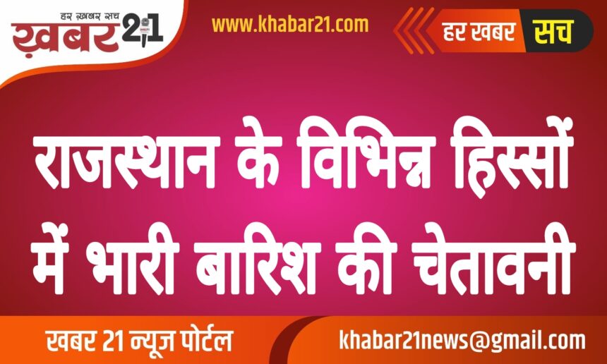 Khabar21 > Blog > बीकानेर > राजस्थान के विभिन्न हिस्सों में भारी बारिश की चेतावनी