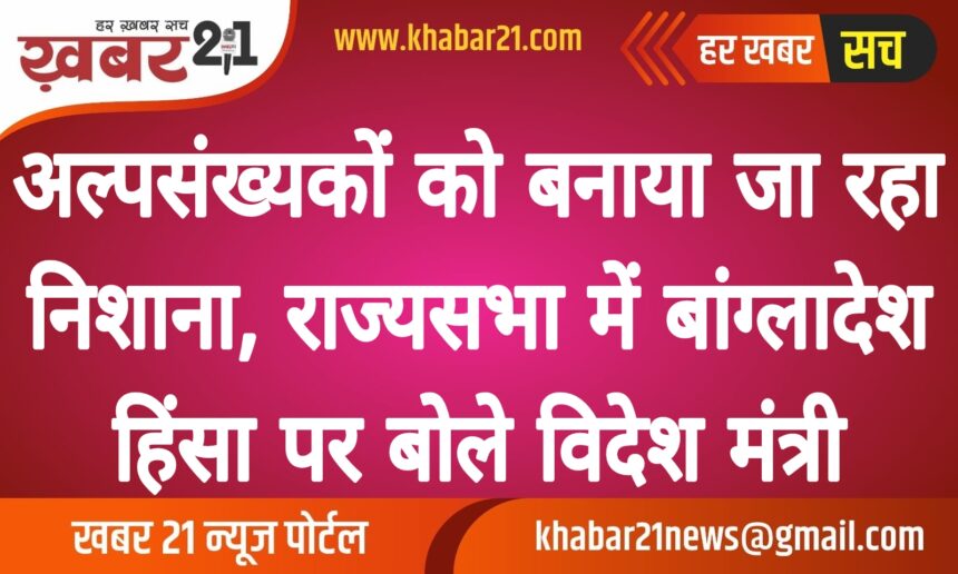 बांग्लादेश में हिंसा का दौर अभी भी जारी है। शेख हसीना के प्रधानमंत्री पद से इस्तीफा देने और देश छोड़ने के बाद भी प्रदर्शनकारी सड़कों पर डटे हुए हैं। पड़ोसी देश में भड़की हिंसा को लेकर भारत लगातार चिंता जता रहा है। अब मंगलवार को विदेश मंत्री एस जयशंकर ने राज्यसभा में बांग्लादेश हिंसा के बारे में जानकारी दी। उन्होंने कहा कि अल्पसंख्यकों को निशाना बनाया जा रहा है।