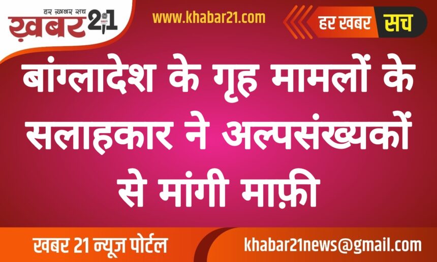Khabar21 > Blog > बीकानेर > बांग्लादेश के गृह मामलों के सलाहकार ने अल्पसंख्यकों से मांगी माफ़ी