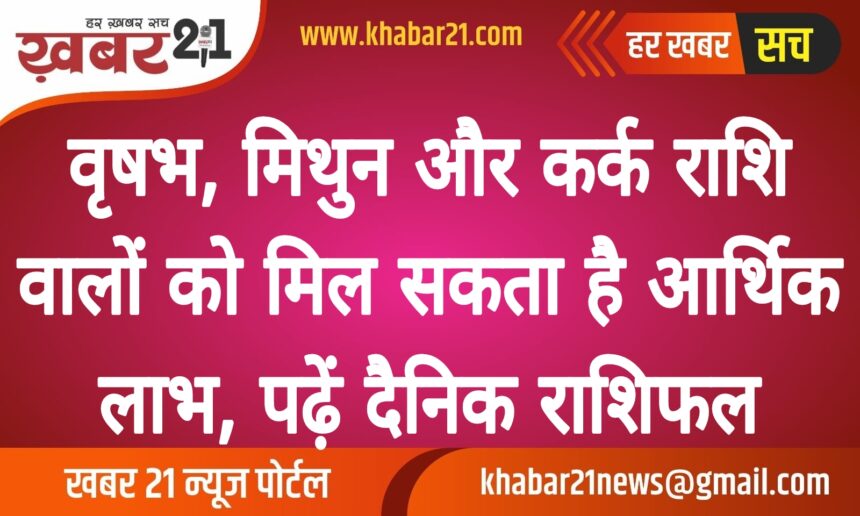 Khabar21 > Blog > बीकानेर > वृषभ, मिथुन और कर्क राशि वालों को मिल सकता है आर्थिक लाभ, पढ़ें दैनिक राशिफल