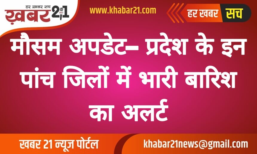 राजस्थान में बारिश का दौर जारी है। प्रदेश के अधिकांश में जिलों में बारिश आफत बनकर बरस रही है। जिसके चलते हाल बेहाल हो गए है। इसी बीच जानकारी सामने आयी है थ्क अगले दो दिनों तक प्रदेश में बारिश का दौर जारी रहेगा। आज राज्य के पांच जिलों में भारी बारिश का रेड अलर्ट जारी किया गया है। वहीं, पांच में ऑरेंज अलर्ट है। मौसम विभाग ने आज टोंक,सवाई माधोपुर,बूंदी,कोटा,बारां में रेड़ अलर्ट जारी किया है। वहीं जयपुर,दौसा,करौली,धोलपुर,भरतपुर में ऑरेंज अलर्ट जारी किया है। मौसम विभाग ने झालावड़ ,भीलवाडा़, अजमेर,बीकानेर,अलवर,सीकर,झुझुनूं,नागौर,चुरू में येलो अलर्ट जारी किया है।