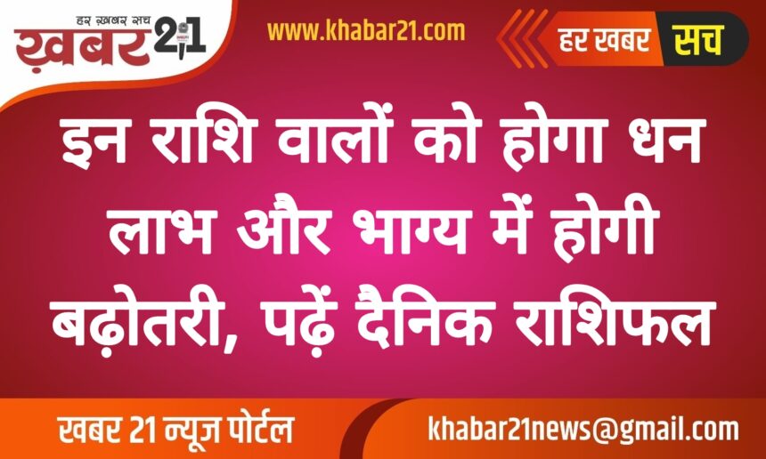 आज का दिन आपके लिए भाग्य के दृष्टिकोण से अच्छा रहने वाला है। आपके प्रभाव और प्रताप में वृद्धि होगी। सामाजिक क्षेत्र में कार्यकर्ता लोगों को उनके कामों के कारण पुरस्कार भी मिल सकता है। आप अपने व्यवसाय में मन मुताबिक लाभ मिलने से आप प्रसन्न रहेंगे। आपको अपने साथी की ओर से कोई खुशखबरी सुनने को मिल सकती है। प्रेम जीवन जी रहे लोग किसी से कोई बात बोलने से पहले सोच विचार अवश्य करें। आप तरक्की की राह पर आगे बढ़ेंगे।