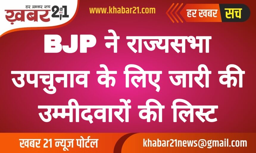 भाजपा ने विभिन्न राज्यों में होने जा रहे राज्यसभा उपचुनाव के लिए अपने 9 उम्मीदवारों के नाम घोषित कर दिए हैं। भाजपा के राष्ट्रीय महासचिव एवं मुख्यालय प्रभारी अरुण सिंह ने पार्टी के राज्यसभा उम्मीदवारों की सूची जारी करते हुए बताया कि भाजपा की केंद्रीय चुनाव समिति ने इन नामों पर अपनी स्वीकृति प्रदान की है।