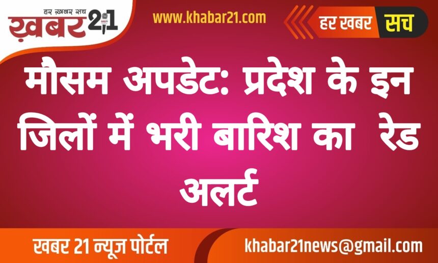 राजस्थान के दक्षिणी-पूर्वी हिस्सों में आज अत्यधिक भारी बारिश की चेतावनी है। मौसम विभाग ने बांसवाड़ा, डूंगरपुर, सिरोही, जालौर और उदयपुर के लिए रेड अलर्ट जारी किया है। इसके अलावा राजसमंद, प्रतापगढ़ और चित्तोड़गढ़, पाली और बाड़मेर में भी अति भारी वर्षा का ओरेंज अलर्ट जारी किया गया है।