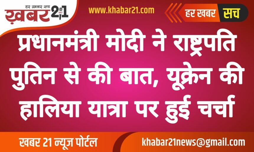 यूक्रेन दौरे से लौटने के बाद प्रधानमंत्री नरेंद्र मोदी इन दिनों वैश्विक देशों के राष्ट्रपति और प्रधानमंत्री से बात कर रहे हैं। मंगलवार को पीएम मोदी ने रूस के राष्ट्रपति ब्लादिमीर पुतिन से बात की। उन्होंने रूस-यूक्रेन संघर्ष को लेकर अपनी बात रखी। साथ ही पुतिन की प्रतिक्रिया जानी। इस दौरान पीएम ने पुतिन को यूक्रेन यात्रा की भी जानकारी दी।