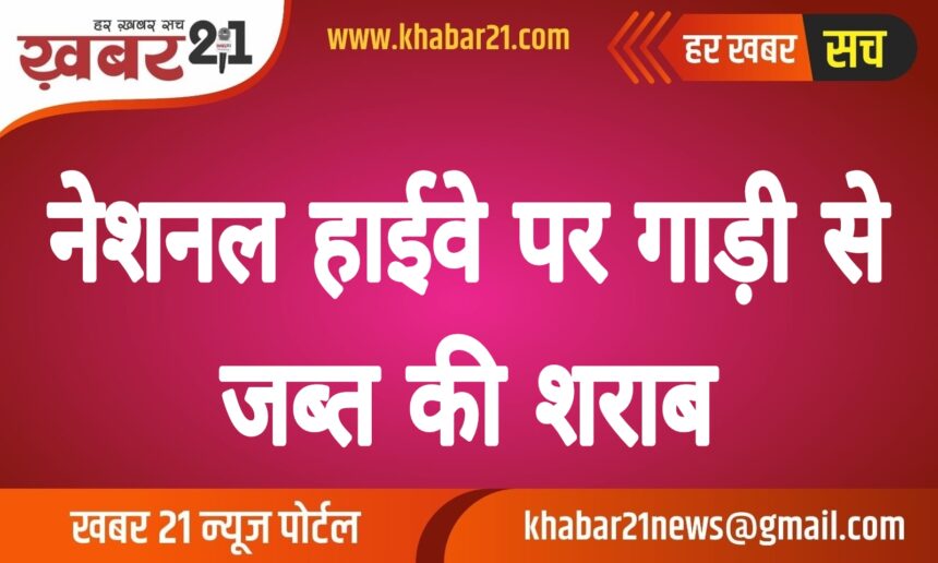 बिना नम्बरी गाड़ी से शराब जब्त करने की खबर सामने आयी है। घटना नापासर थाना क्षेत्र के वीर तेजा होटल के पास नेशनल हाईवे पर 27 अगस्तकी रात की हे। इस सम्बंध में अज्ञात वाहन चालक के खिलाफ मुकदमा दर्ज किया गया हे। पुलिस टीम ने रात के समय में दुर्घटनाकारित बिना नम्बरी वाहन को देखा तो उसकी तलाशी ली। इस दौरान बिना नम्बरी वाहन में से 44 पव्वे देशी शराब के मिले। पुलिस ने शराब और गाड़ी को जब्त कर लिया और अज्ञात के खिलाफ मुकदमा दर्ज किया हे।