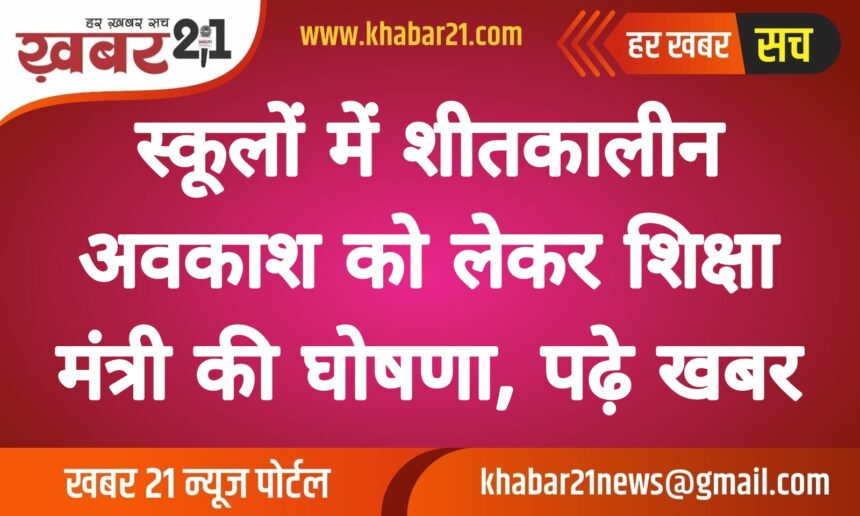 Khabar21 > Blog > बीकानेर > स्कूलों में शीतकालीन अवकाश को लेकर शिक्षा मंत्री की घोषणा, पढ़े खबर