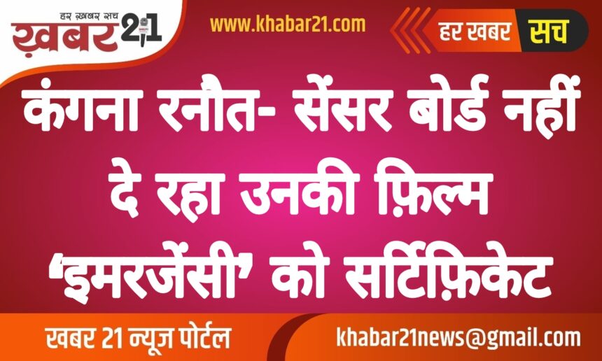 अब कंगना रनौत ने अपनी आने वाली फ़िल्म ‘इमरजेंसी’ को लेकर एक ताज़ा बयान दिया है. कंगना ने कहा कि उनकी फ़िल्म को प्रमाण पत्र नहीं दिया जा रहा है.