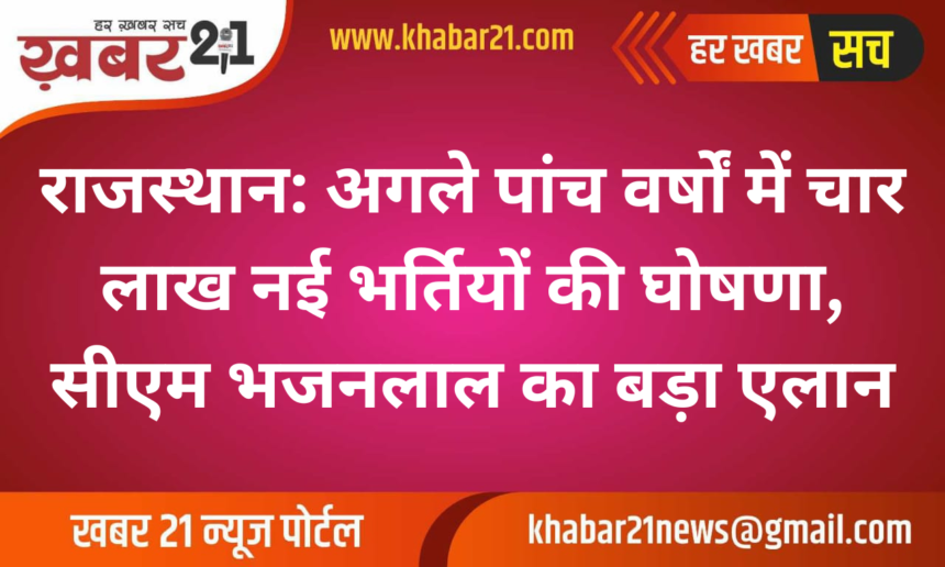 Khabar21 > Blog > बीकानेर > राजस्थान: अगले पांच वर्षों में चार लाख नई भर्तियों की घोषणा, सीएम भजनलाल का बड़ा एलान