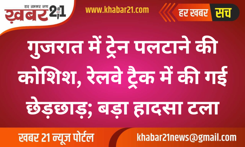गुजरात में ट्रेन को पलटाने की बड़ी साजिश नाकाम कर दी गई। दरअसल, सूरत के पास वडोदरा डिविजन के तहत अप लाइन रेलवे ट्रैक के साथ छेड़छाड़ की गई। कुछ अज्ञात व्यक्तियों ने पटरी की फिश प्लेट और चाबी खोल दी। इससे बड़ा हादसा हो सकता था।