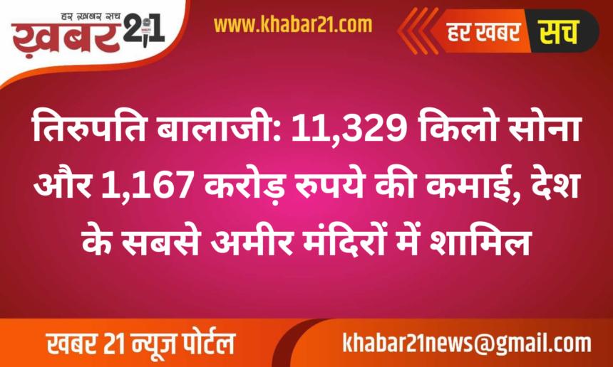 Khabar21 > Blog > बीकानेर > तिरुपति बालाजी: 11,329 किलो सोना और 1,167 करोड़ रुपये की कमाई, देश के सबसे अमीर मंदिरों में शामिल