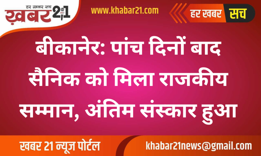 Khabar21 > Blog > बीकानेर > पांच दिनों बाद सैनिक को मिला राजकीय सम्मान, अंतिम संस्कार हुआ