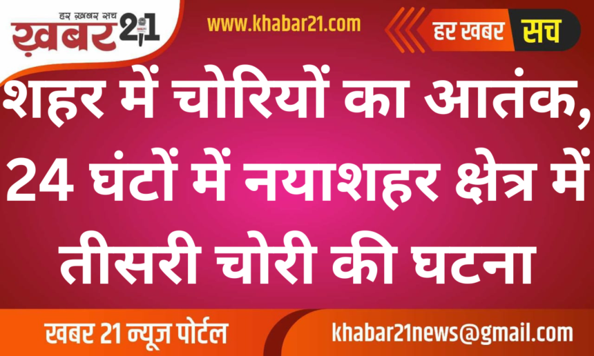बीते 24 घंटों में नयाशहर थाना क्षेत्र में यह तीसरी चोरी की घटना सामने आई है। इससे पहले रामदेव पार्क के पास स्थित सुशील कुमार पुरोहित के मकान से लाखों रुपये का सामान चोरों ने पार कर लिया। इसके बाद नत्थुसर बास में देवकिशन सोनी के घर से करीब 10 लाख रुपये का सोना चोरी हो गया।