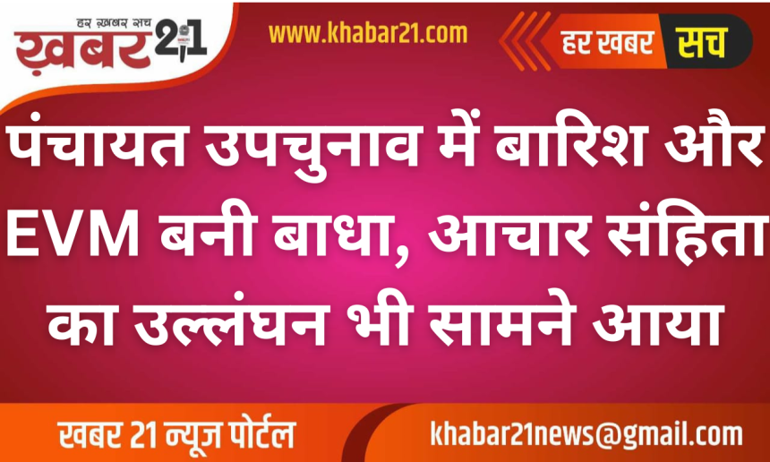 जयपुर/डूंगरपुर/करौली। राजस्थान में पंचायत उपचुनावों को लेकर गुरुवार को करौली, जयपुर ग्रामीण और डूंगरपुर जिलों में मतदान हुआ। तेज बारिश, तकनीकी खराबी और आचार संहिता उल्लंघन के बीच चुनावी माहौल खासा गर्म रहा।