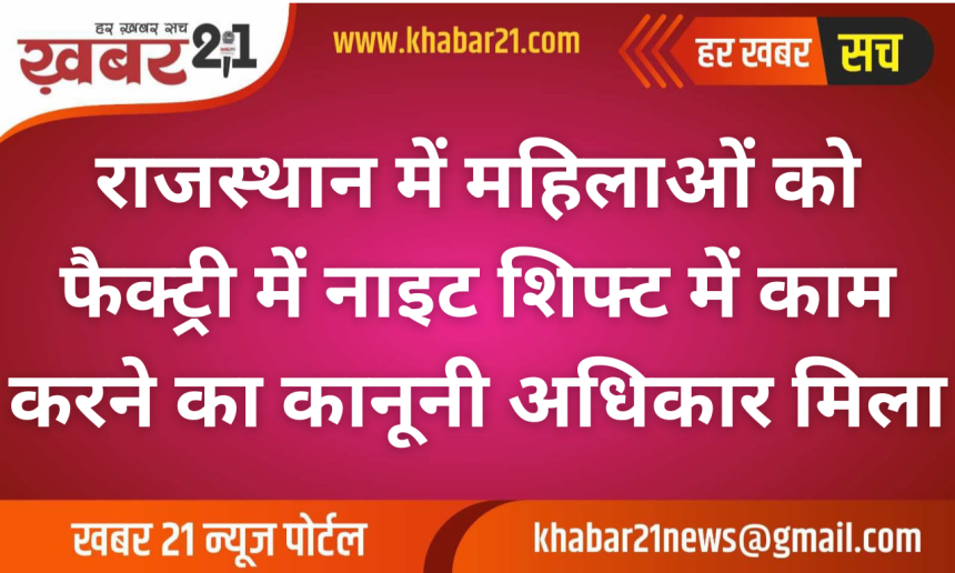 Khabar21 > Blog > बीकानेर > राजस्थान में महिलाओं को फैक्ट्री में नाइट शिफ्ट में काम करने का कानूनी अधिकार मिला
