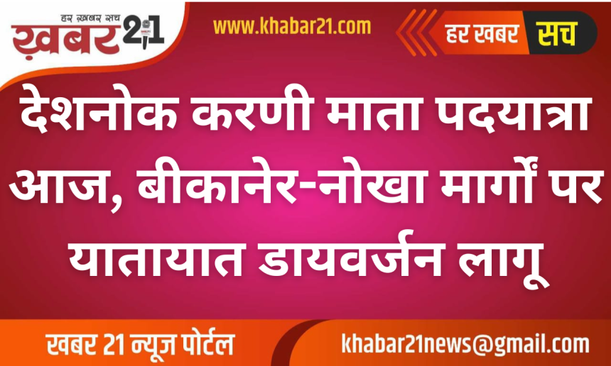 Khabar21 > Blog > बीकानेर > देशनोक करणी माता पदयात्रा आज, बीकानेर-नोखा मार्गों पर यातायात डायवर्जन लागू