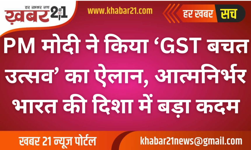 नई दिल्ली, 21 सितंबर 2025: प्रधानमंत्री नरेंद्र मोदी ने रविवार को देश के नाम संबोधन में ‘जीएसटी बचत उत्सव’ की घोषणा करते हुए इसे आत्मनिर्भर भारत की दिशा में एक ऐतिहासिक कदम बताया। पीएम मोदी ने नवरात्रि के पहले दिन से इस महाअभियान की शुरुआत की घोषणा की, जो नए जीएसटी सुधारों के साथ शुरू होगा। प्रधानमंत्री ने कहा कि यह उत्सव केवल कर प्रणाली में बदलाव नहीं, बल्कि आम आदमी की जेब में राहत और देश की आर्थिक गति को नया आयाम देने वाला कदम है।