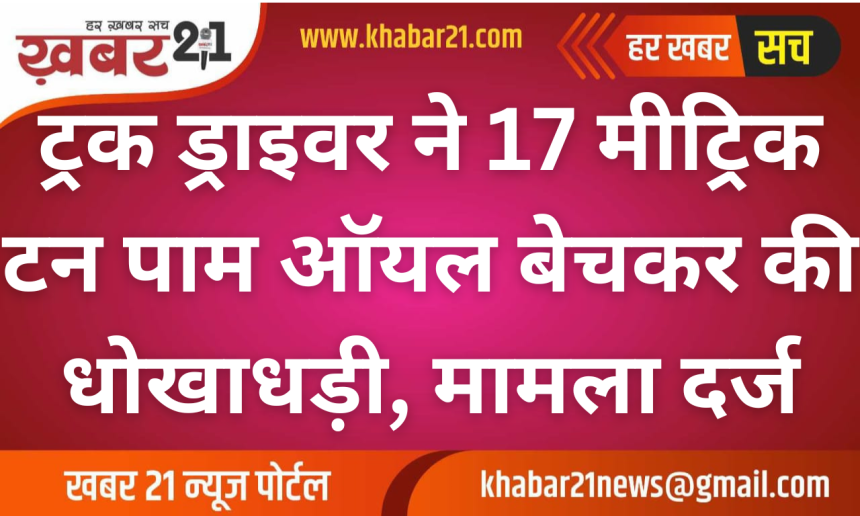 ट्रक ड्राइवर ने 17 मीट्रिक टन पाम ऑयल बेचकर की धोखाधड़ी, मामला दर्ज