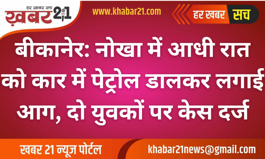 बीकानेर, नोखा। नोखा थाना क्षेत्र के भाटों का बास इलाके में बीती रात एक कार में जानबूझकर आग लगाने की सनसनीखेज वारदात सामने आई है। घटना के पीछे निजी रंजिश मानी जा रही है। पुलिस ने दो नामजद युवकों के खिलाफ आगजनी और जानलेवा हमले के प्रयास का मामला दर्ज किया है।