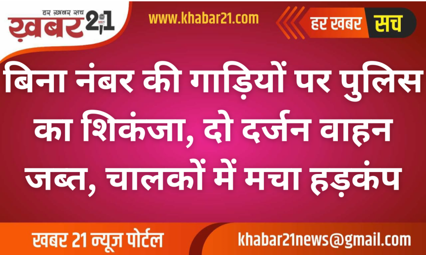 सड़क पर बिना नंबर की गाड़ियों पर चला पुलिस का डंडा, दो दर्जन से ज्यादा वाहन जब्त