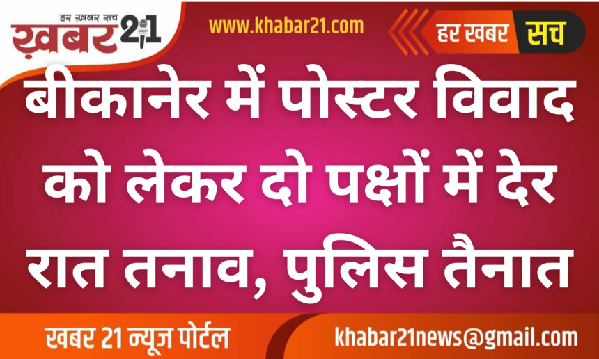 Khabar21 > Blog > बीकानेर > बीकानेर में पोस्टर विवाद को लेकर दो पक्षों में देर रात तनाव, पुलिस तैनात