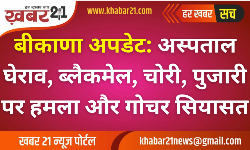 Khabar21 > Blog > बीकानेर > बीकाणा अपडेट: अस्पताल घेराव, ब्लैकमेल, चोरी, पुजारी पर हमला और गोचर सियासत
