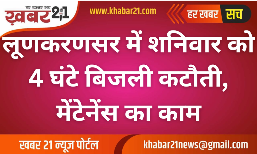 Khabar21 > Blog > बीकानेर > लूणकरणसर में शनिवार को 4 घंटे बिजली कटौती, मेंटेनेंस का काम