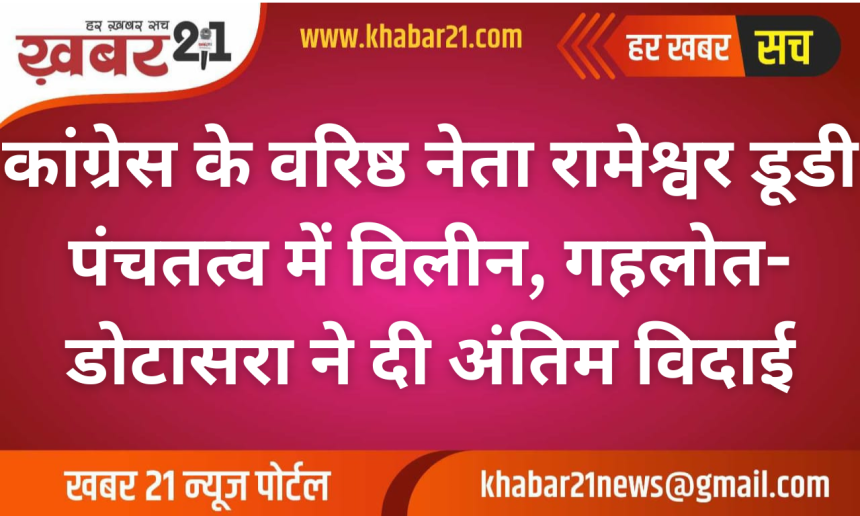 कांग्रेस के वरिष्ठ नेता रामेश्वर डूडी पंचतत्व में विलीन, गहलोत-डोटासरा ने दी अंतिम विदाई