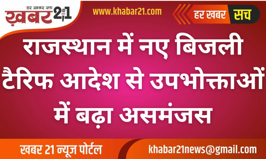 Khabar21 > Blog > राजस्थान > राजस्थान में नए बिजली टैरिफ आदेश से उपभोक्ताओं में बढ़ा असमंजस