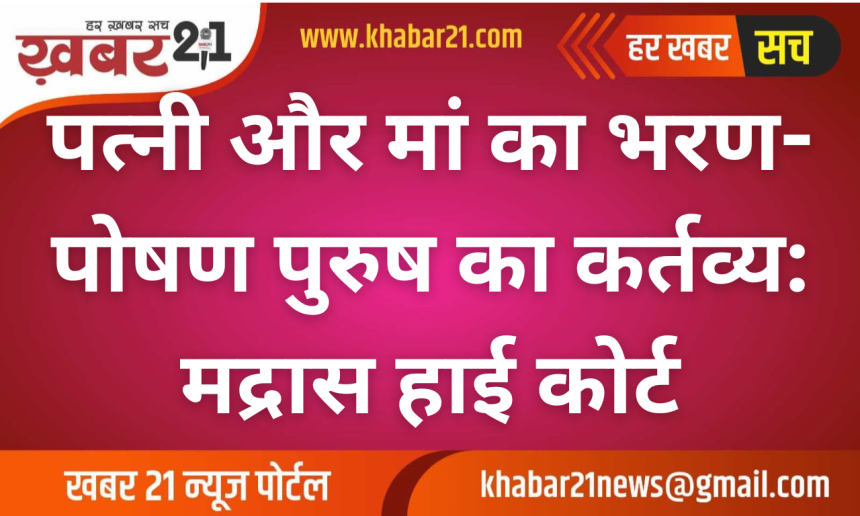 Khabar21 > Blog > देश-दुनिया > पत्नी और मां का भरण-पोषण पुरुष का कर्तव्य: मद्रास हाई कोर्ट